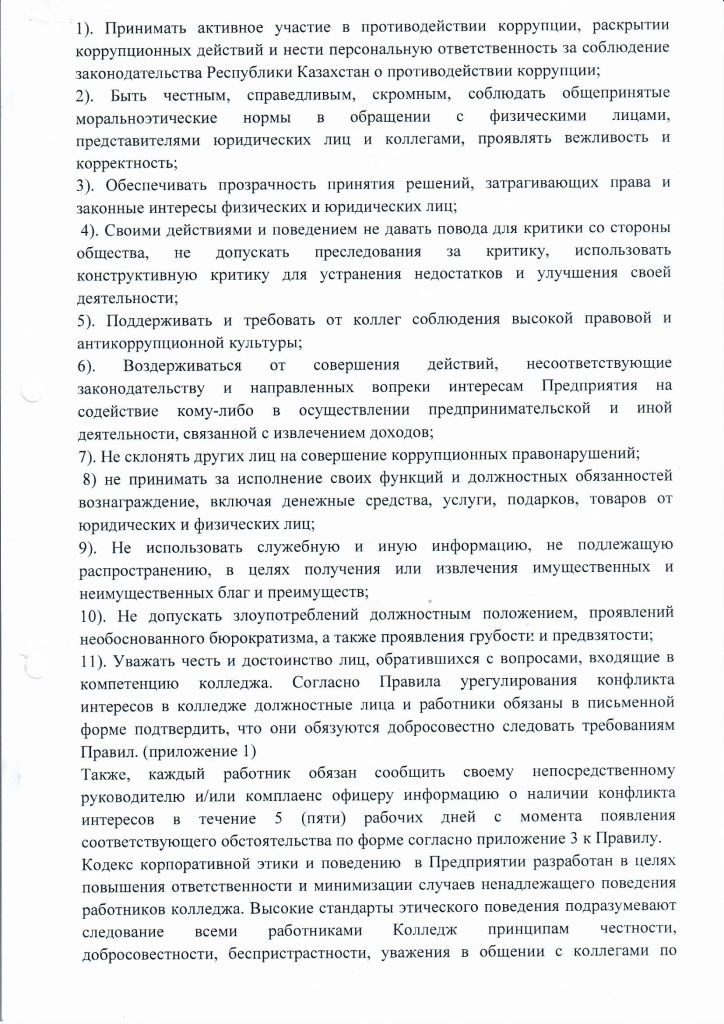 В рамках антикоррупционной политики прошел «Час добропорядочности» с участием обучающихся 1 - 2 курсов. Целью мероприятия являлось продвижение антикоррупционной культуры среди молодежи и разъяснения важности глубоких знаний, формирование у подрастающего поколения общечеловеческих ценностей, воспитание принципов честности. В рамках акции студентами и преподавателями был просмотрен видеоролик, снятый с участием сотрудника Департамента Агентства по противодействию коррупции по Костанайской области Ержан Лукпанов. в актуальном для молодежи подкаст - формате.