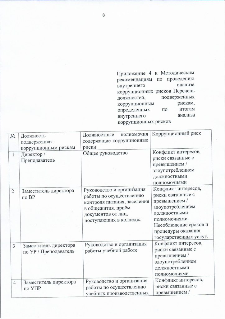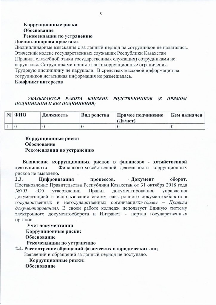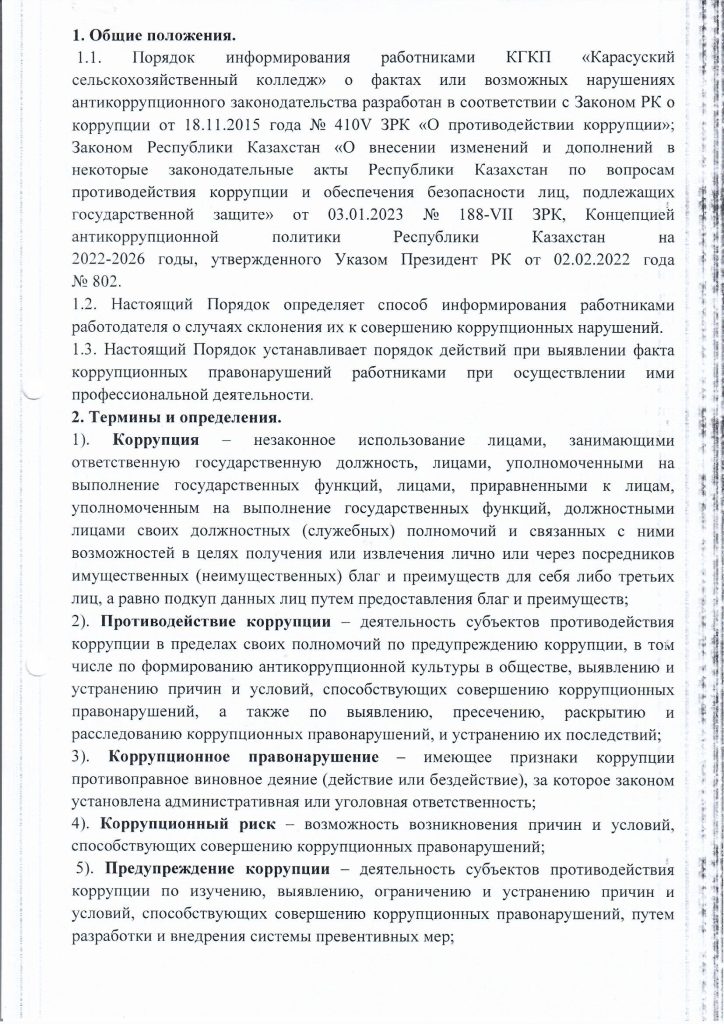 13 января 2025 года заместителем директора по ВР Тикеновым М.Ж. и педагогом организатором НВиТП Елембаевым Р.Д. с кураторами учебных групп КГКП «Карасуский сельскохозяйственный колледж» проведена беседа разъяснительного характера по предотвращению и урегулированию конфликтных интересов и порядке информирования работниками о фактах или возможных нарушениях антикоррупционного законодательства. Целью противодействия коррупции в КГКП «Карасуский сельскохозяйственный колледж» является минимизация риска вовлечения должностных лиц и сотрудников колледжа независимо от занимаемой должности в коррупционную деятельность.
