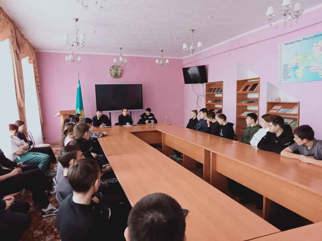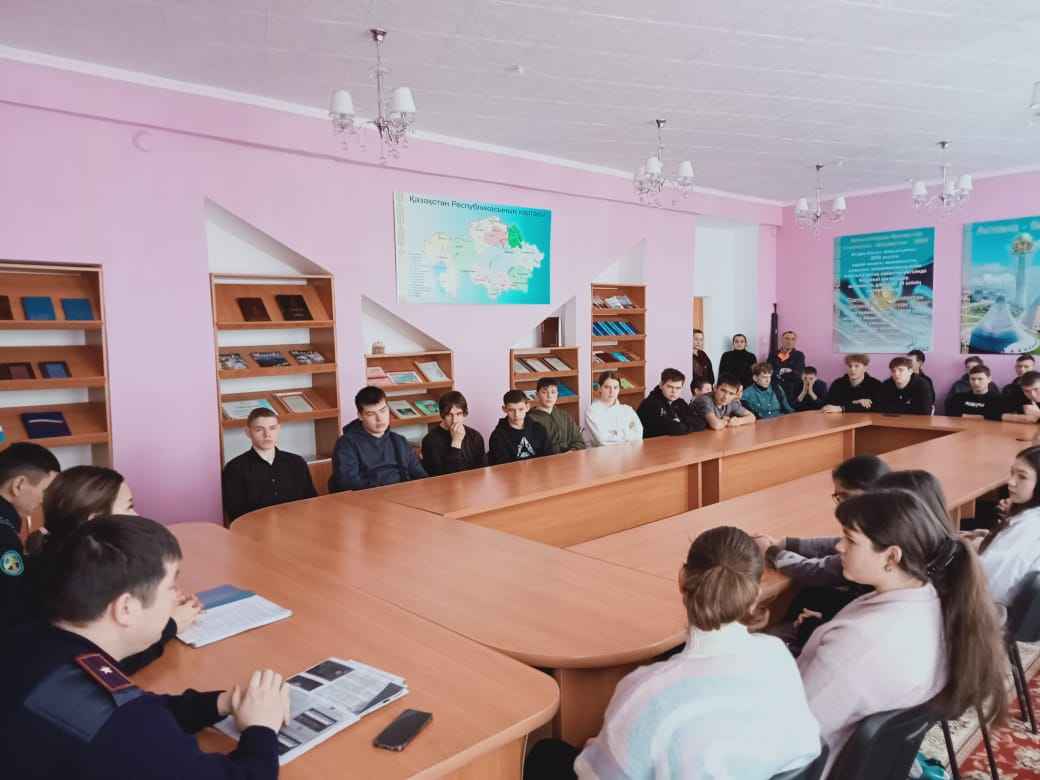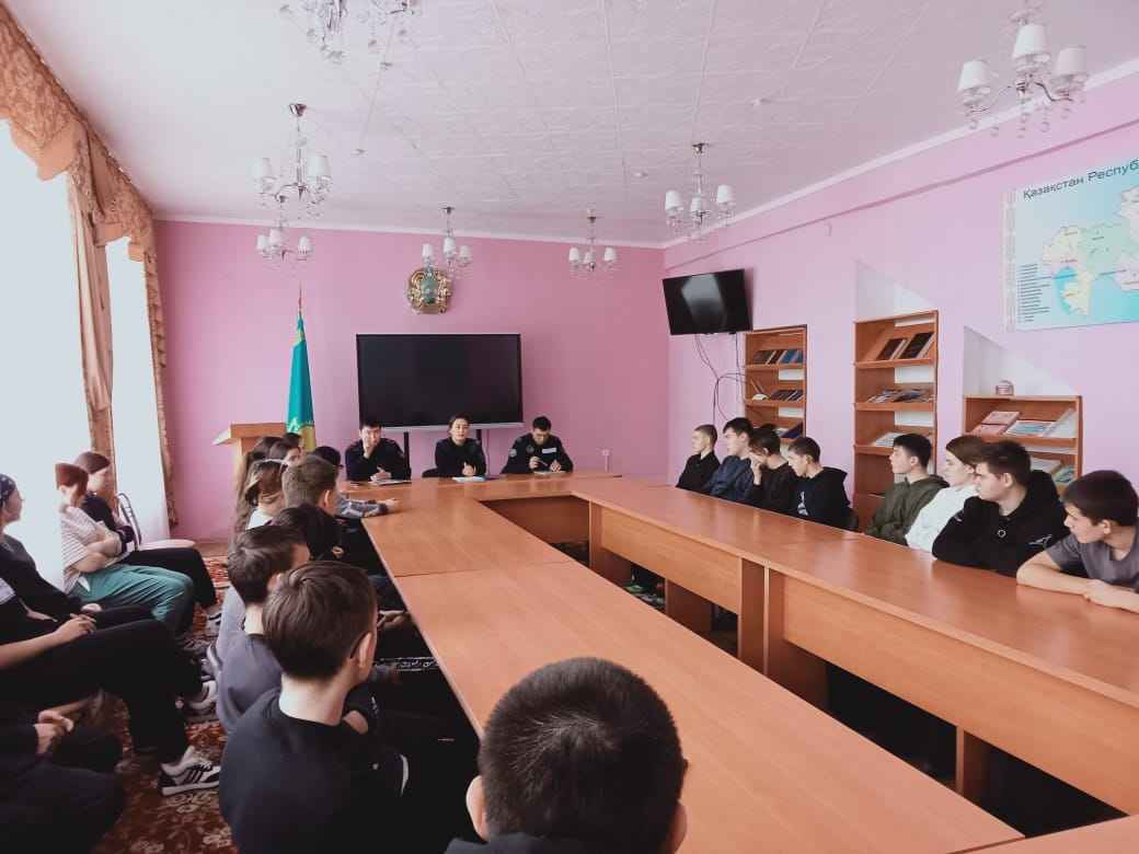 15 марта 2023 года заместителем директора по ВР Тикеновым М.Ж. совместно с работниками правоохранительных органов проведена беседа профилактического и разъяснительного характера на тему: «Профилактика религиозного экстремизма и терроризма». Охват обучающихся 45 человек.