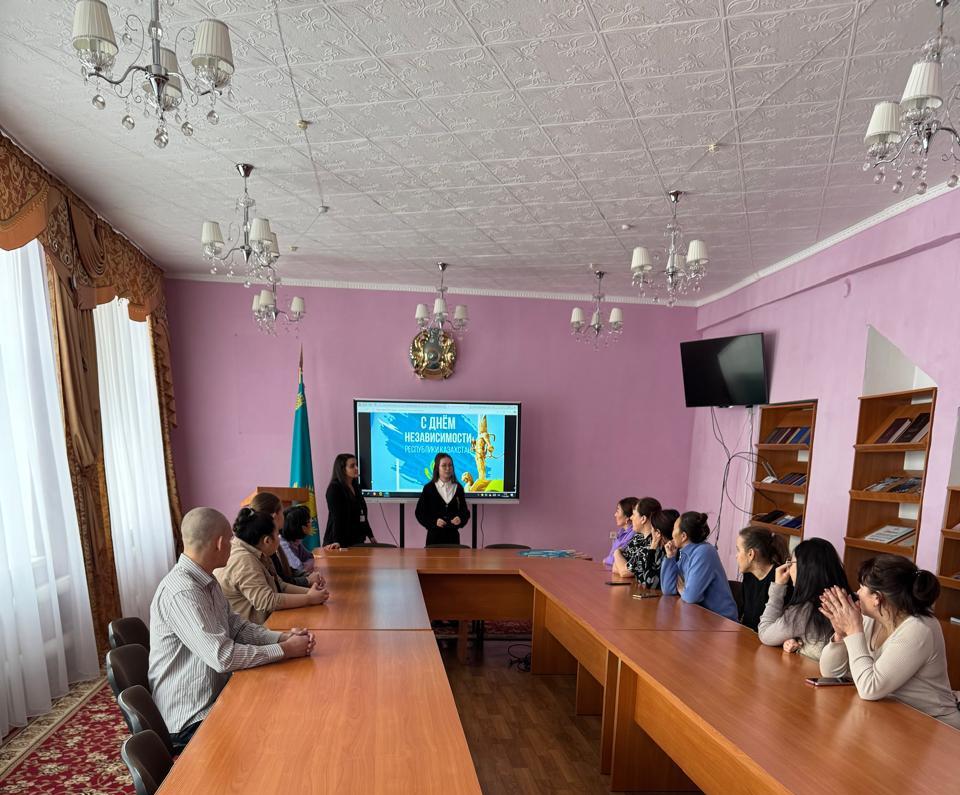 30 июня текущего года библиотекарь колледжа Петренко Т.Н приняла участие в центральной районной библиотеке с Карасу в тематической выставке «Нұрлы Астанамен бірге жайна, ауылым!»