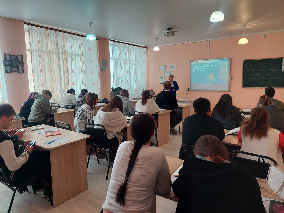 5 сентября преподавателем казахского языка Умербековой А.Б с обучающимися колледжа был проведен кураторский час «Тіл - Тәуелсіздік тірегі», посвященная Дню языков народа Казахстана и 30 - летию Конституции Республики Казахстана».