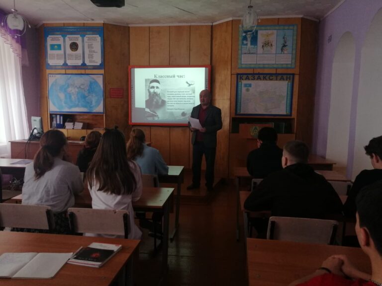 Оқушыларды штурмовик - ұшқыш Талғат Бегілдиновпен таныстыру.