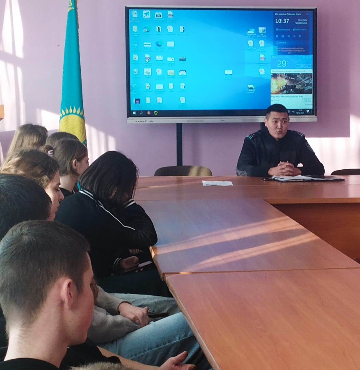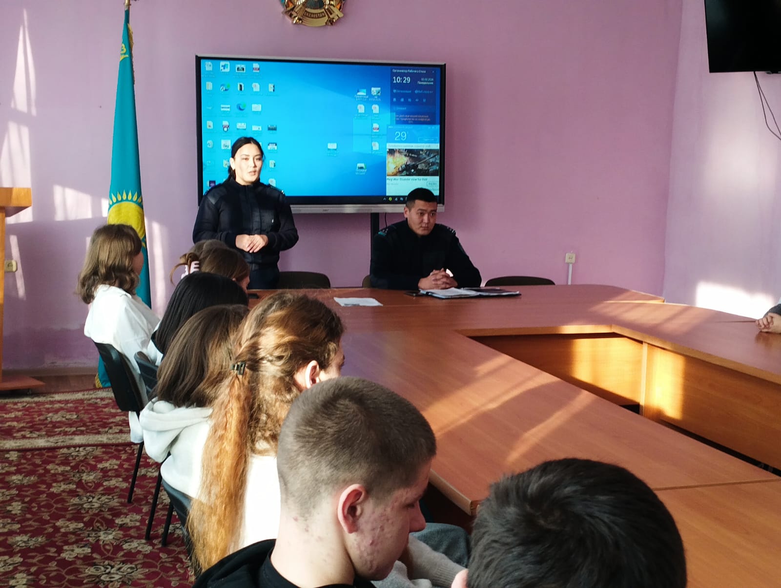 Полиция қызметкері жасөспірімдер мен жастарды қандай қауіптер күтіп тұрғаны және олардан қалай аулақ болу керектігі туралы өте қолжетімді және түсінікті айтты. Қорқыту сияқты жағымсыз мәселеге ерекше назар аударылды. Әрі қарай әңгіме қылмыстық және әкімшілік жауапкершілікке қатысты болды. Полиция қызметкері қылмыстық қудалауға дейін қандай әрекеттер ауыр зардаптарға әкелуі мүмкін екенін түсіндірді. Нашақорлық, темекі шегу және алкогольді тұтыну сияқты жастар арасында жиі кездесетін проблемалар да назардан тыс қалмады. Сондай - ақ, тыйым салынған заттарды қолдану мен таратуға байланысты заңнамалық шектеулер, сондай - ақ осы заңдарды бұзғандар үшін салдары туралы айтылды.