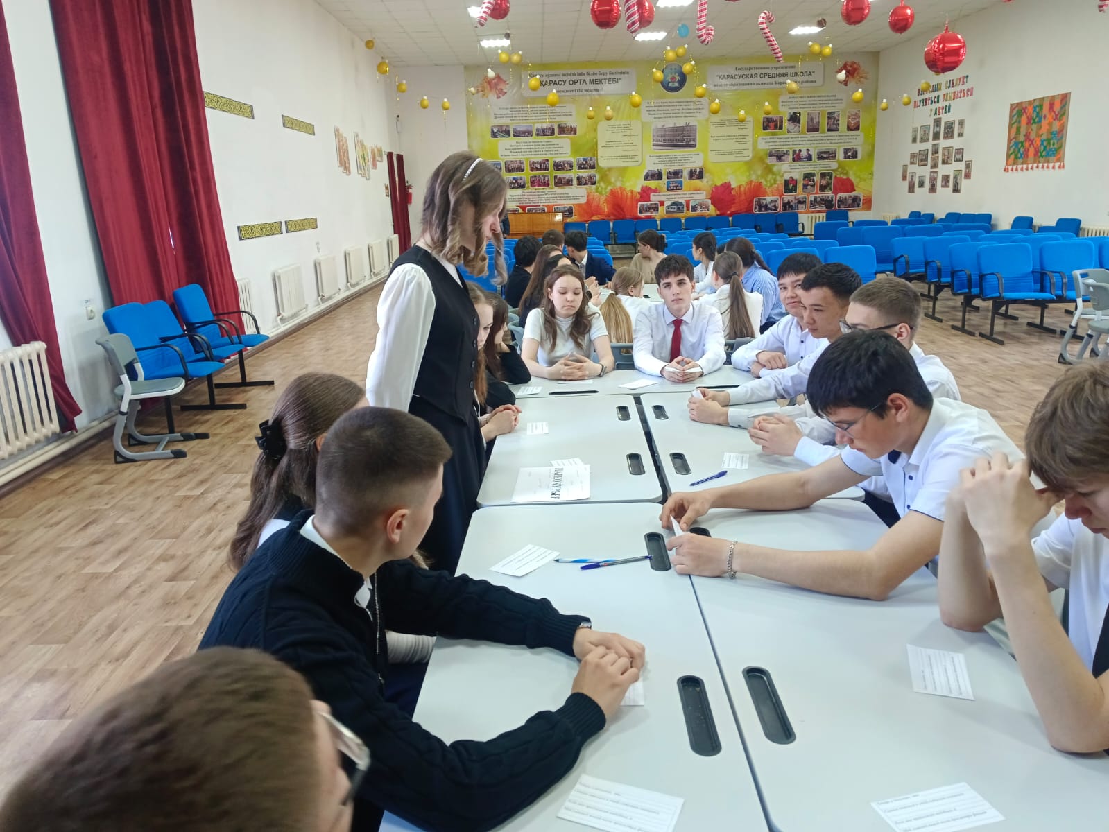"Қарасу ауыл шаруашылығы колледжі" КМҚК "Студенттік парламент" жобасын іске асыру шеңберінде "Жұлдызды сағат" атауымен 2026 жылғы 27 наурызда П - 26 тобының білім алушыларымен "AMANAT" партиясының Қарасу аудандық филиалының басшысы К. К. Мұқановпен және Қарасу балалар-жасөспірімдер спорт мектебінің басшысы А. Б. Нұртазинмен кездесу ұйымдастырылды