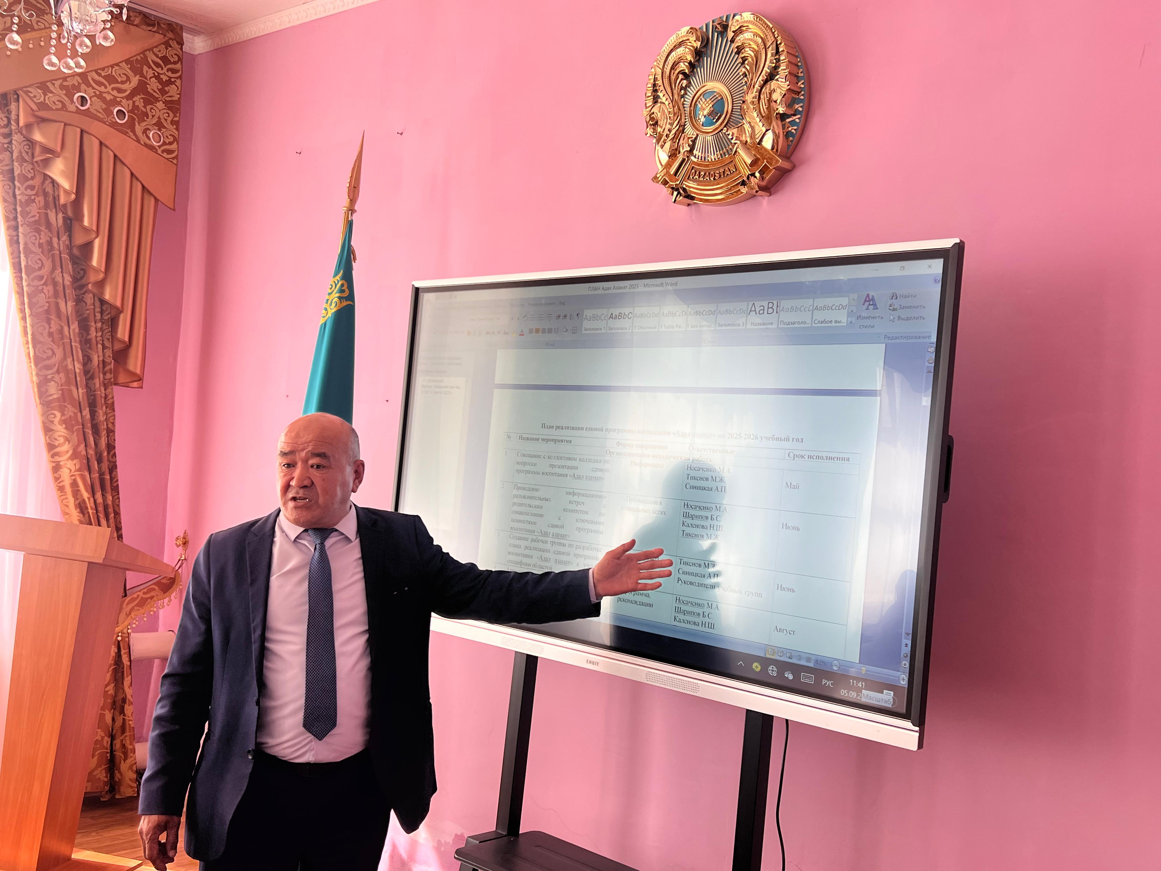 2025 жылғы 6 қыркүйекте "Қарасу ауыл шаруашылығы колледжі" КМҚК директорының тәрбие жұмысы жөніндегі орынбасары М.Ж. Тикеновпен саналы, адал және жауапты азаматты тәрбиелеуге бағытталған "Адал азамат" Бірыңғай тәрбие бағдарламасы бойынша оқу топтарының кураторларымен семинар өткізілді.